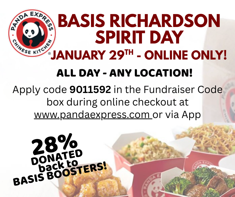 Spirit Nights are an easy and fun way to support BASIS Richardson Boosters. Join us at our upcoming Spirit Nights, where part of your purchase will be donated back to the Boosters to support student programs and school events.